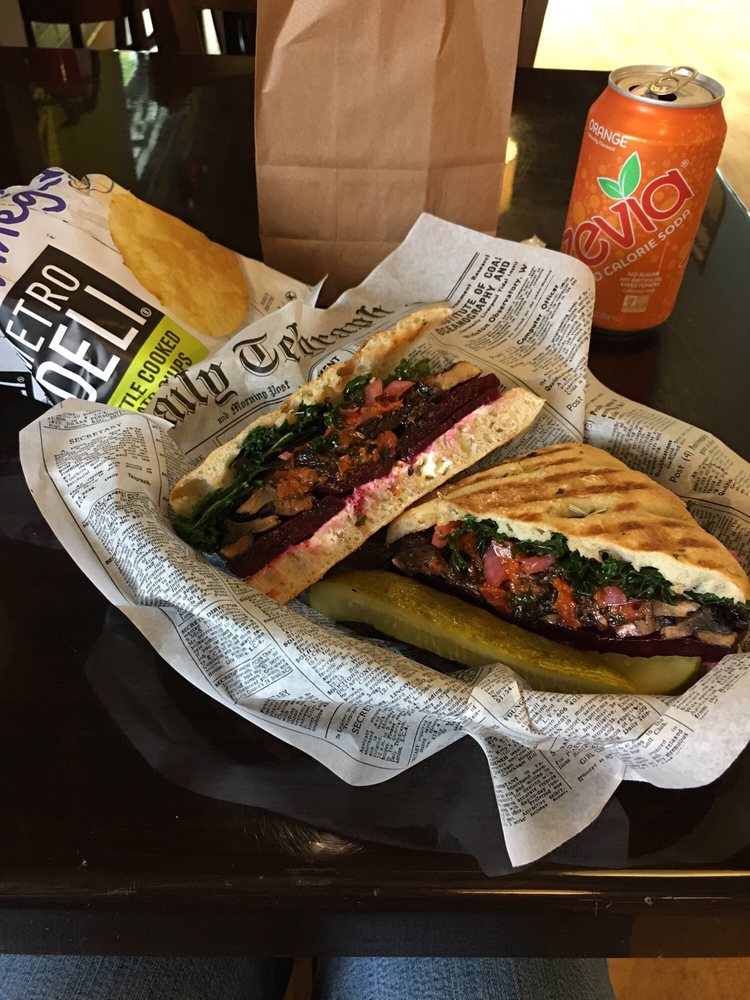 MJ's seasoned baked tofu, avocado, spinach, tomato, pickled red onions, Dijon mustard and vegenaise and served on sourdough bread